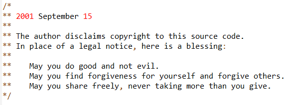 sqlite 源代码 的注释说了些什么 前面讲了,源代码我也搞不定。就只能看看开头的注释。 一般情况一段源代码开头都是这样的: