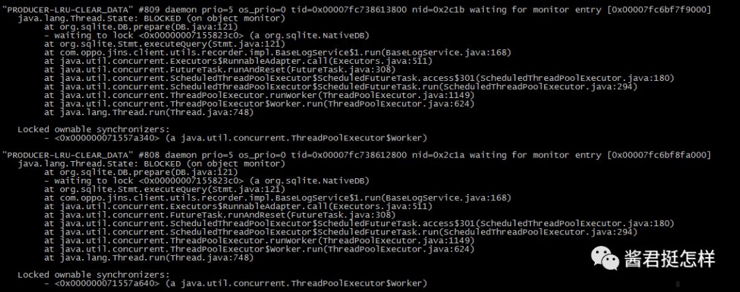 实际上造成这个的原因,有一部分也是因为我这粗制滥造的程序引起的。在我的程序中通过jdbc设置了autocommit为false,并且有一个线程去轮询查询sqlite的某些值并对其做增删改的操作,但在方法结束时,并没有立刻commit操作(本想在达到操作一定量的数据以后再去做对应的commit操作),因此就尴尬的出现了这个问题了。 当然上述由于程序的粗制滥造,只是为这个问题提供了良好的土壤。实际上你可以发现,即使立刻commit,也还是会有几率出现死锁的问题了,只不过减少的发生的概率而已。