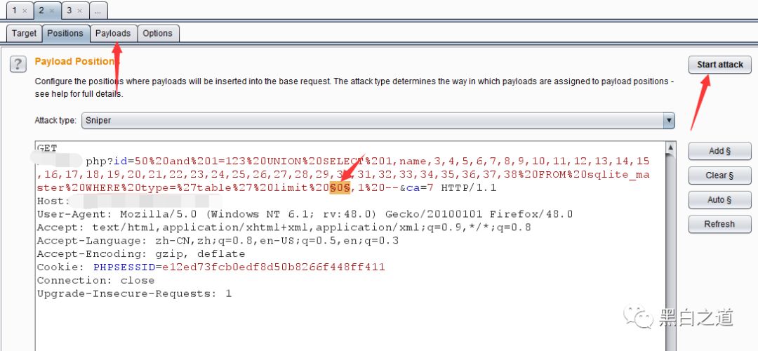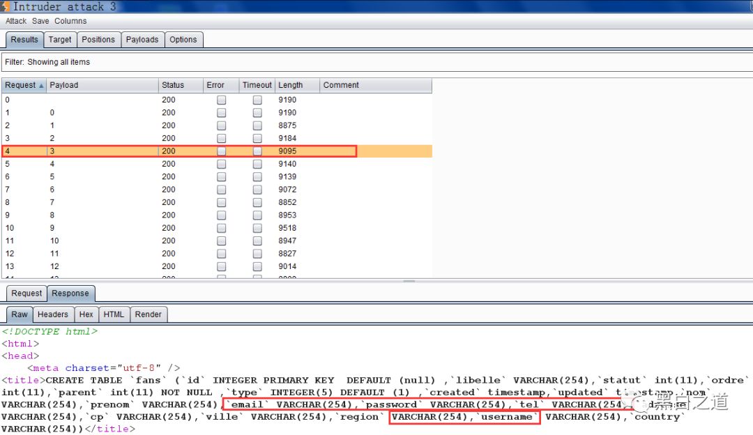 10,查出所有表名,这里可以用burpsuite来跑比较方便