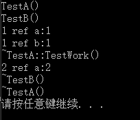 2、ptr_a 和ptr_b在main函数中退出前,引用计数均为1,也就是说,在TestA和TestB中对std::weak_ptr的相互引用,不会导致计数的增加。在TestB析构函数中,调用std::shared_ptr tmp = m_TestA_Ptr.lock(),把std::weak_ptr类型转换成std::shared_ptr类型,然后对TestA对象进行调用。