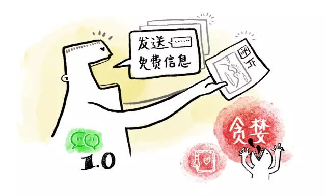 微信的起点是贪婪。以前手机上发一条彩信两块钱,用微信1.0上传照片不用钱。