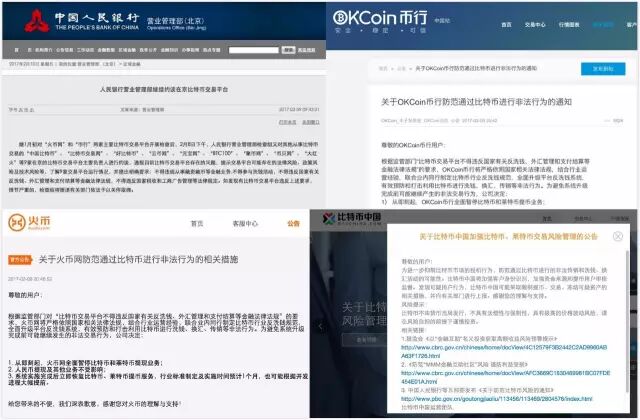 1月18日,第一批检查结果公布:“比特币中国” 超范围经营、违规开展配资业务、“币行”“火币网”未按规定建立反洗钱制度。三大平台立刻关停融资融币;